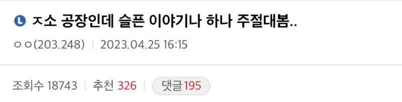 ㅈ소공장인데 슬픈이야기 하나 주절대봄