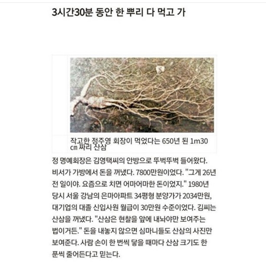 정주영 회장이 7,800만원 현찰 입금하고 먹은 산삼 썰.jpg