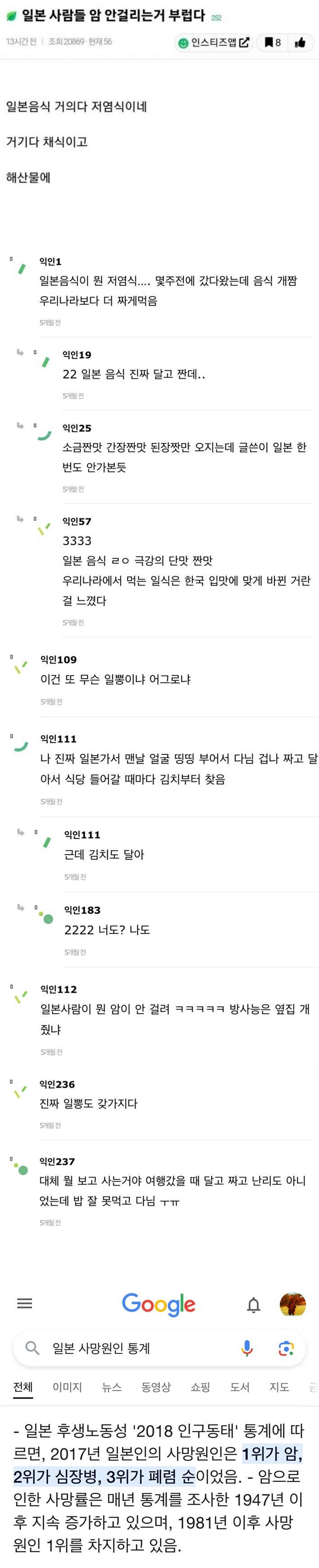 일본 사람들 암 안걸리는거 부럽다