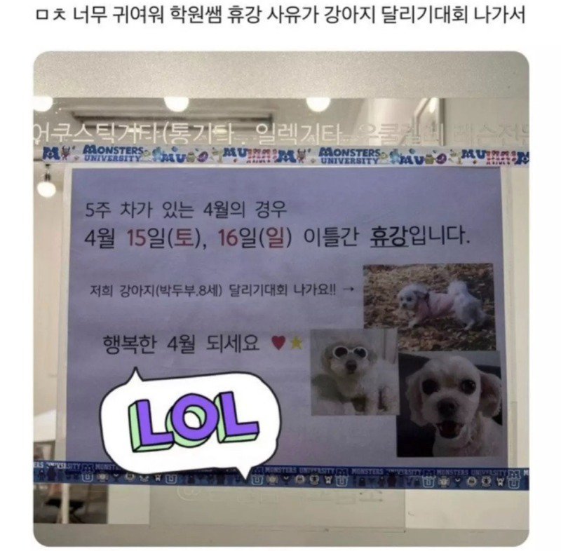 너무한 학원휴강 사유