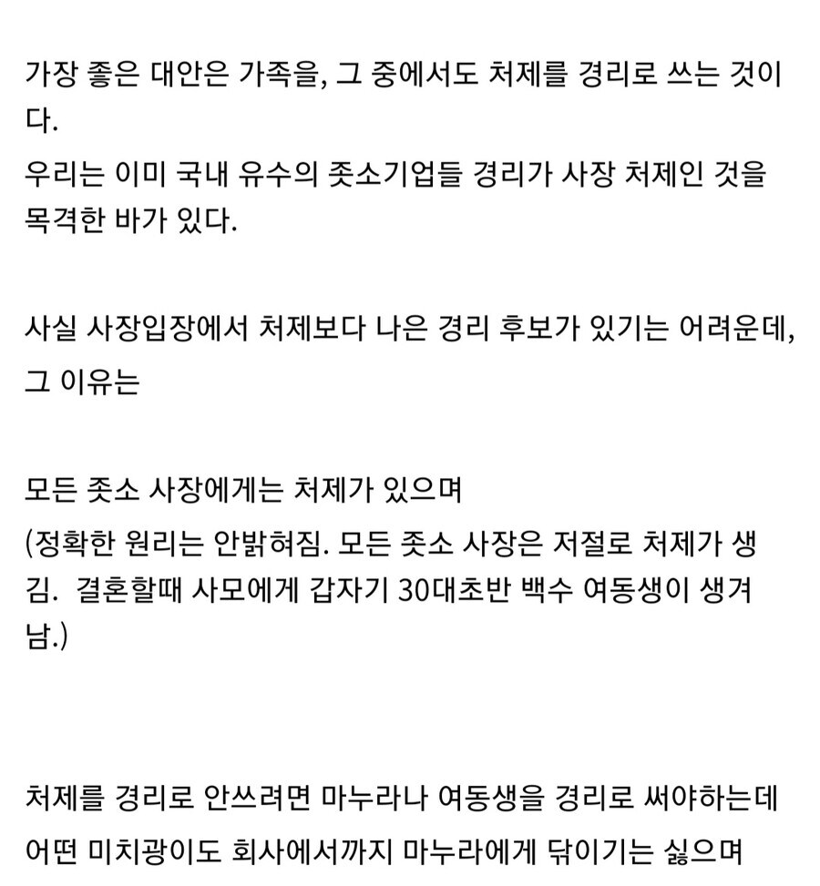 중소기업 경리가 사장 처제인 이유