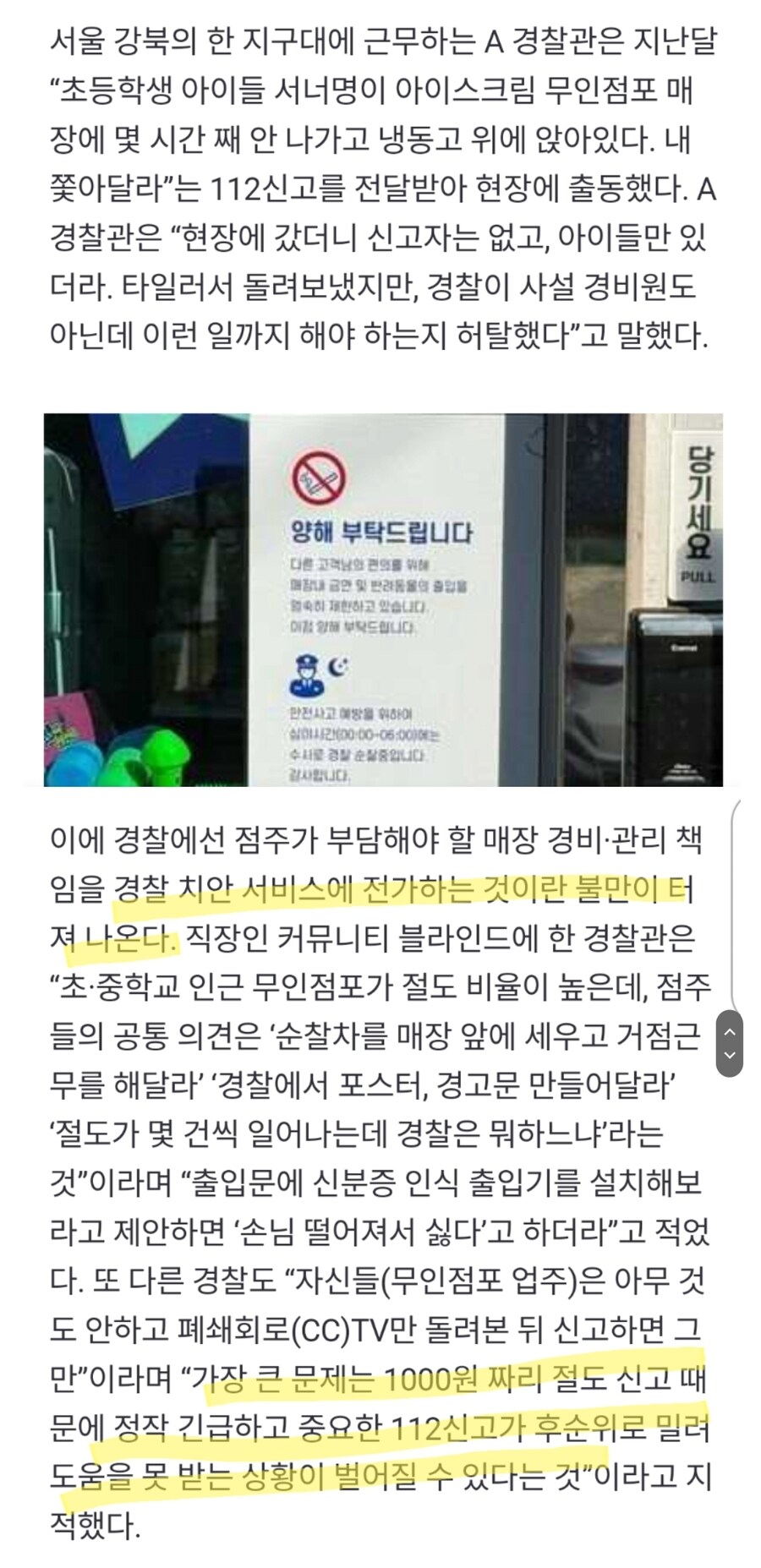 무인점포 잇단 절도에 "순찰 돌아달라"…경찰 "우리가 경비냐"