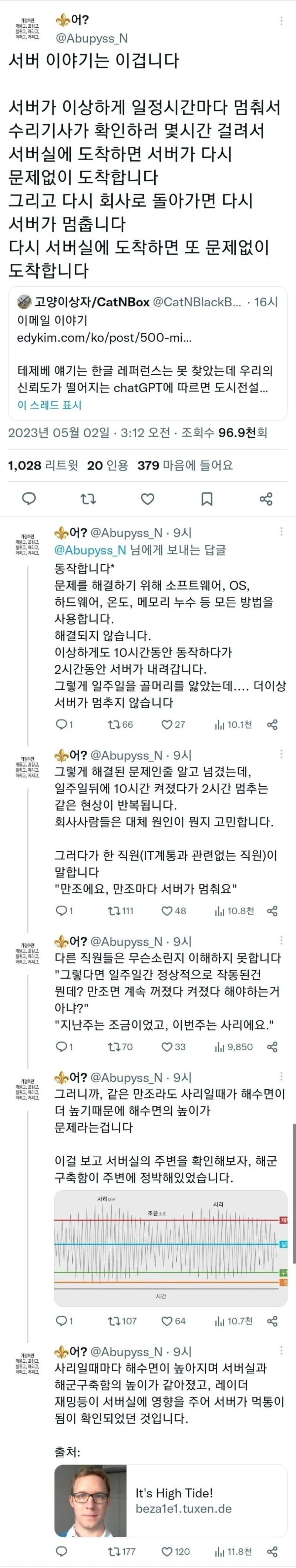 만조 때마다 서버가 멈춰요 ㅜㅜ...x