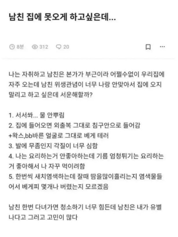 남친 집에 못오게 하고싶은데..
