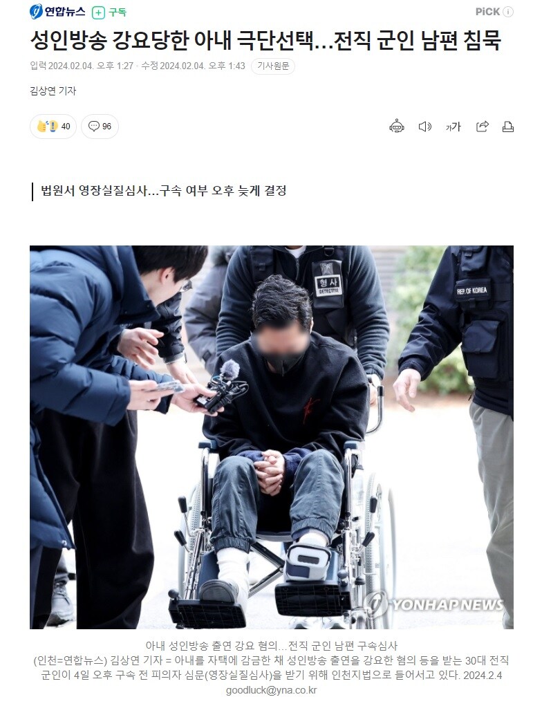 성인방송 강요당한 아내 극단선택 남편 긴급체포