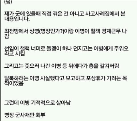 휴가 하나 때문에 후임을 총으로 쏜 사건