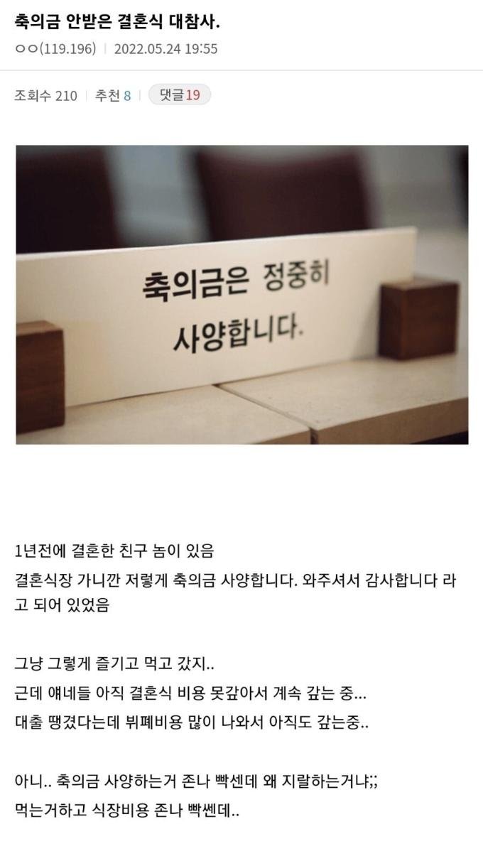 축의금 안 받은 결혼식 대참사 ㄷㄷ