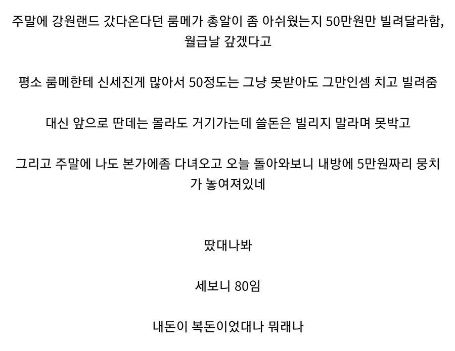 강원랜드 간다는 룸메한테 돈 빌려준 사람
