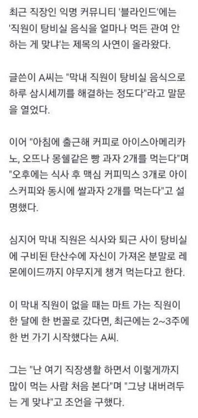 직원이 탕비실 음식 얼마나 먹든 관여 안하는게 맞냐?