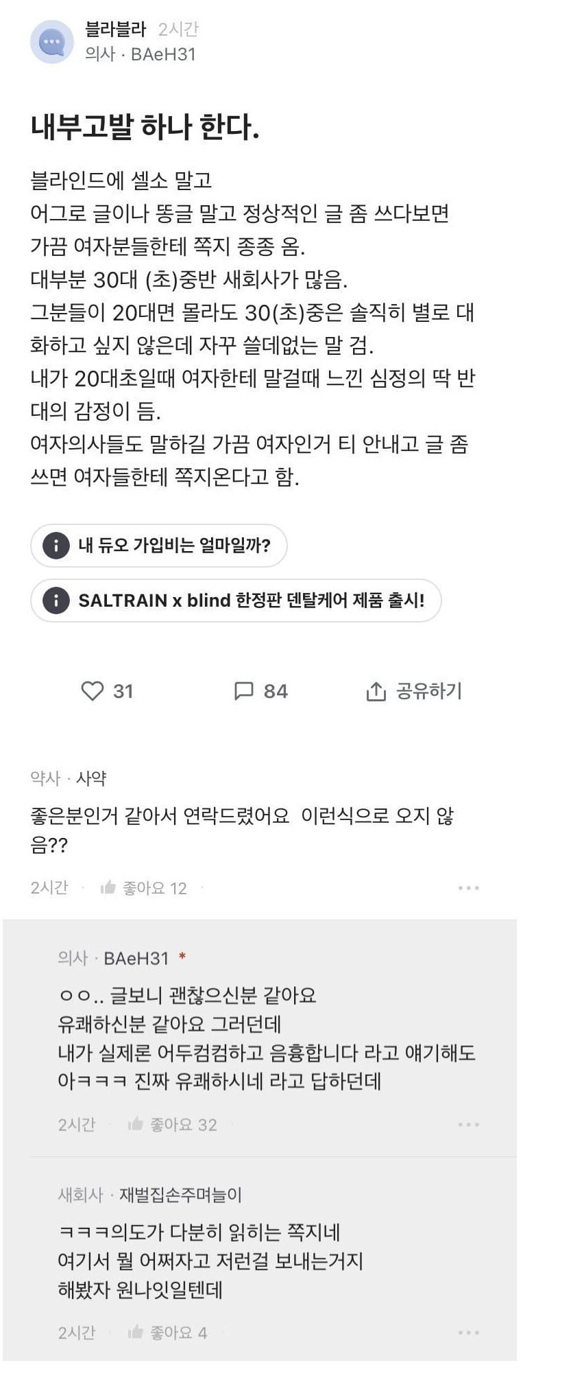30대 여자들한테 쪽지 온다는 의사