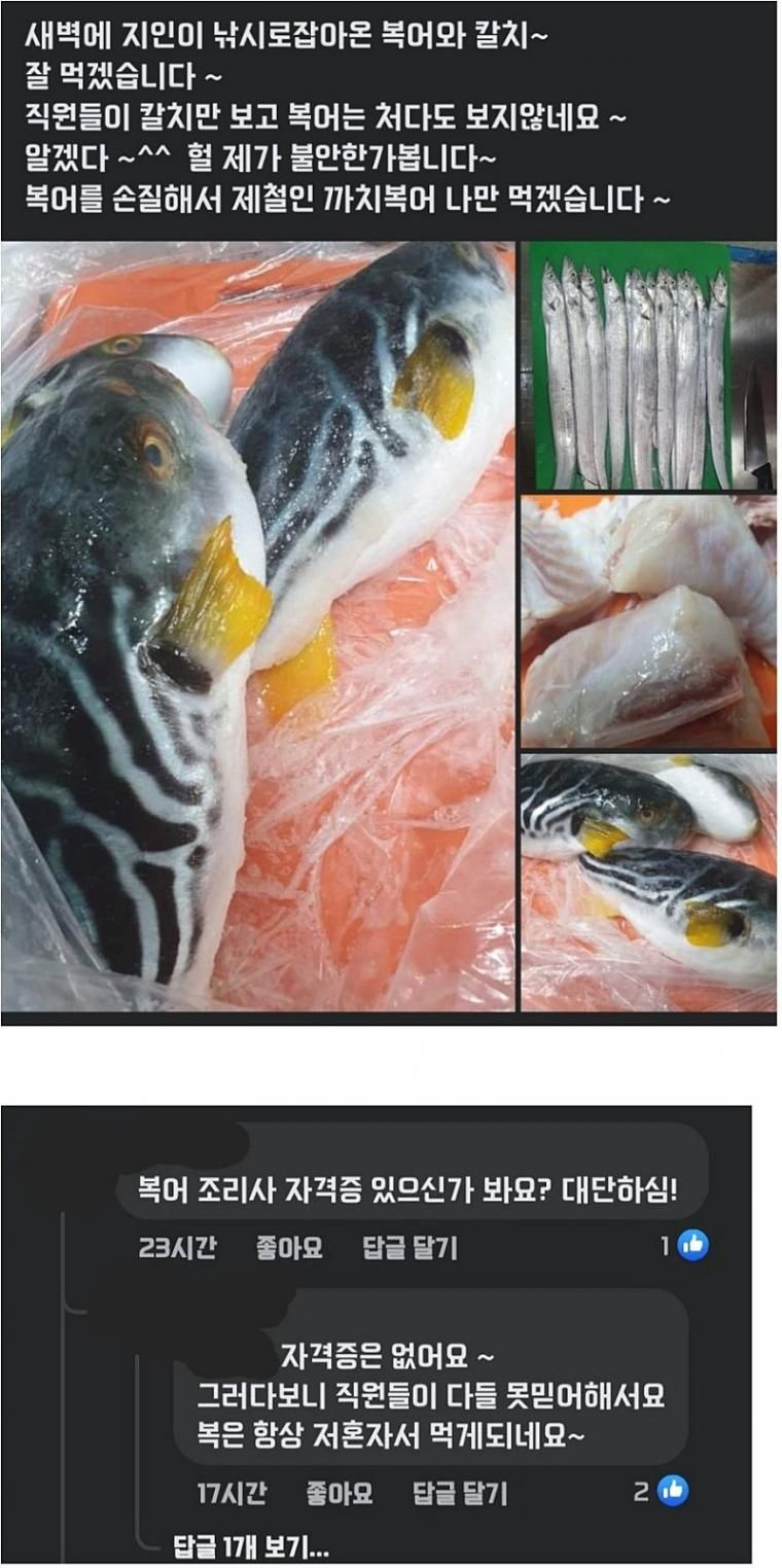 직원들이 자연산 복어 안먹네요