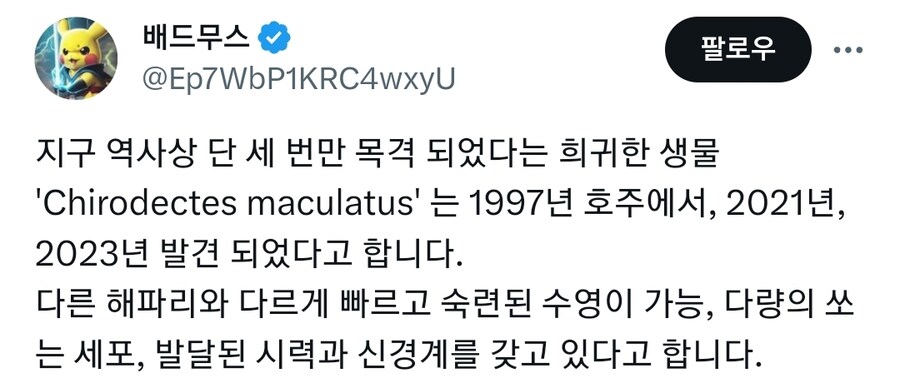 지구 역사상 단 세 번만 목격 되었다는 희귀한 생물
