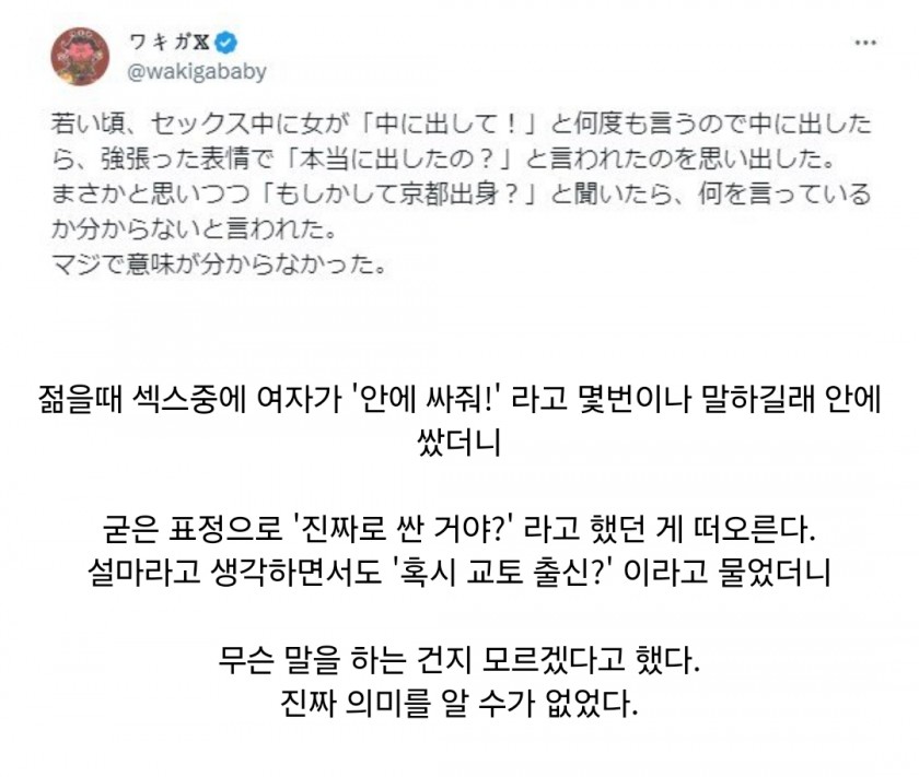 젊을 때 ㅅㅅ 중에 여자가 계속 안에 싸달라길래