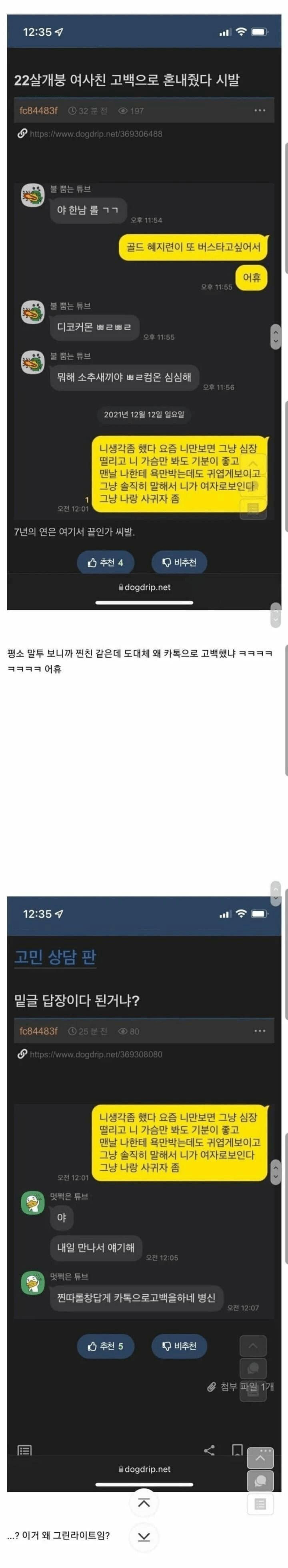 찐따 고백 레전드