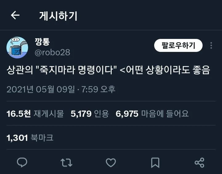 "죽지마라...명령이다."