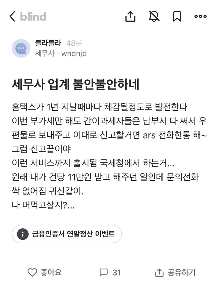요즘 세무 업계가 불안해진걸 느낀 블라인드 세무사