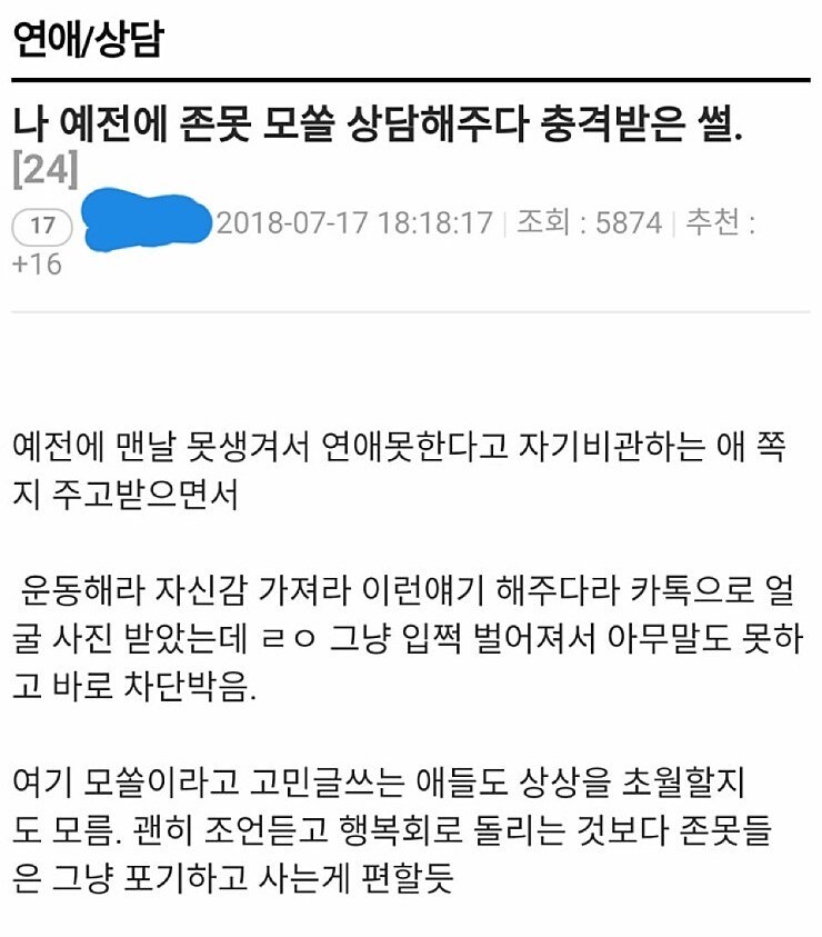 모쏠 연애상담 해주다 충격먹은 썰.jpg