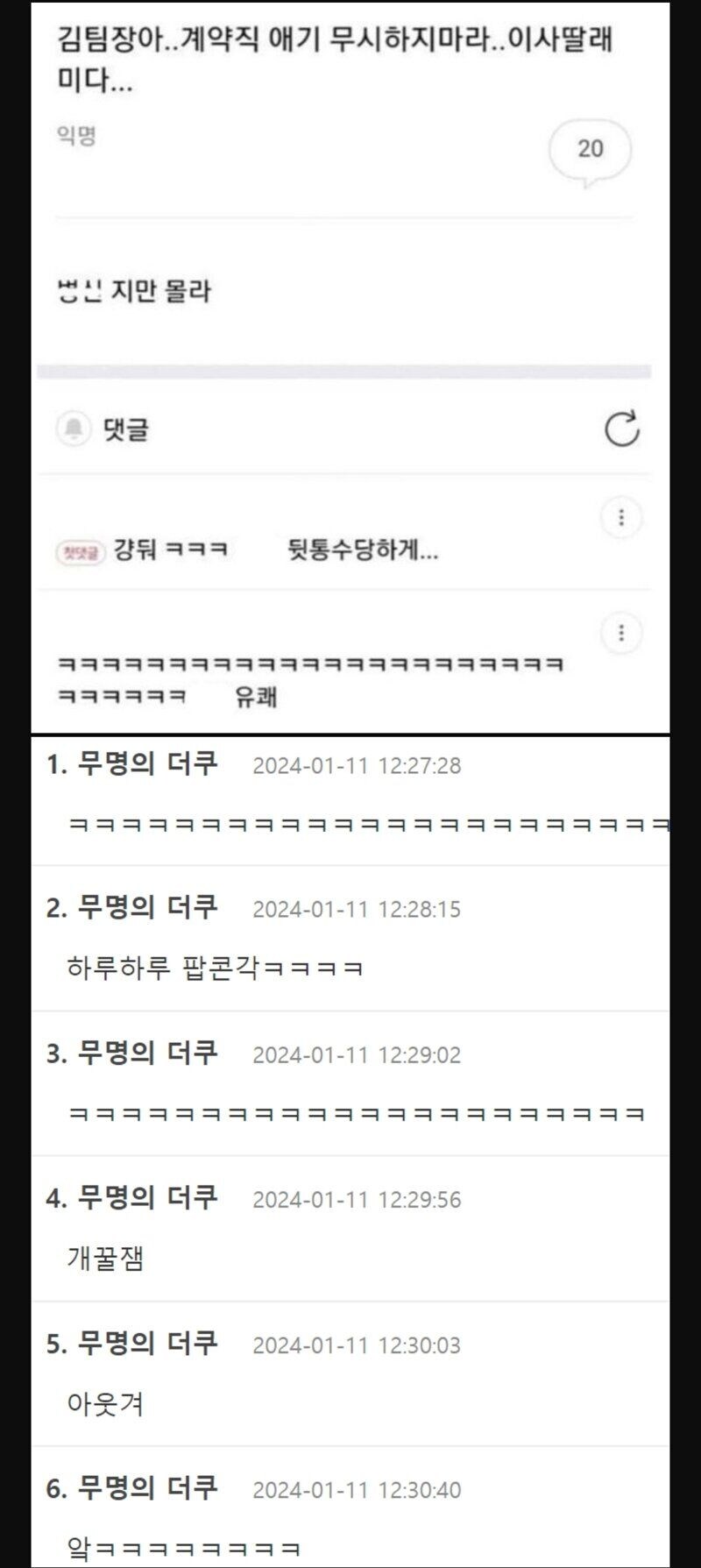 김실장아 계약직 애기 무시하지 마라