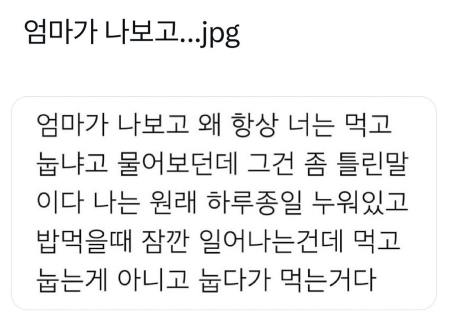 엄마가 나보고 왜 항상 먹고 눕냐는데