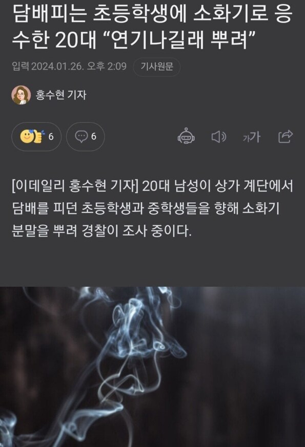 담배피는 초딩한테 소화기 뿌린 20대 청년 ㅋㅋ