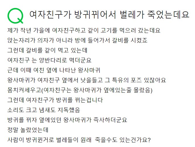 여자 친구가 방귀 뀌어서 왕사마귀가 죽었는데요