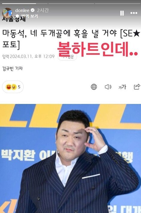 뉴스기사 해명중인 마동석